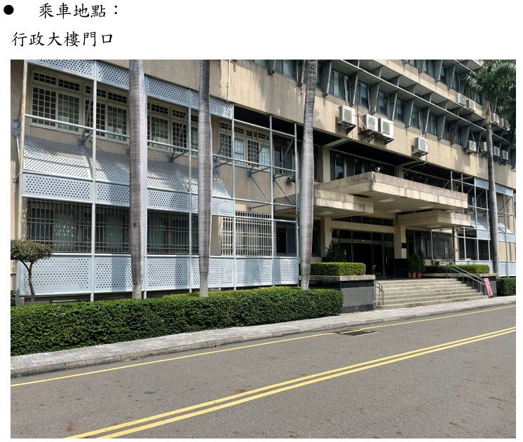 將派遣20人座中型巴士進行自宿舍區至校本部之接駁作業,因考量車輛體積、迴轉問題、學生上下車安全及避免交通堵塞,請恕無法直接於文化路上進行接駁,擬設定於行政大樓上下車。