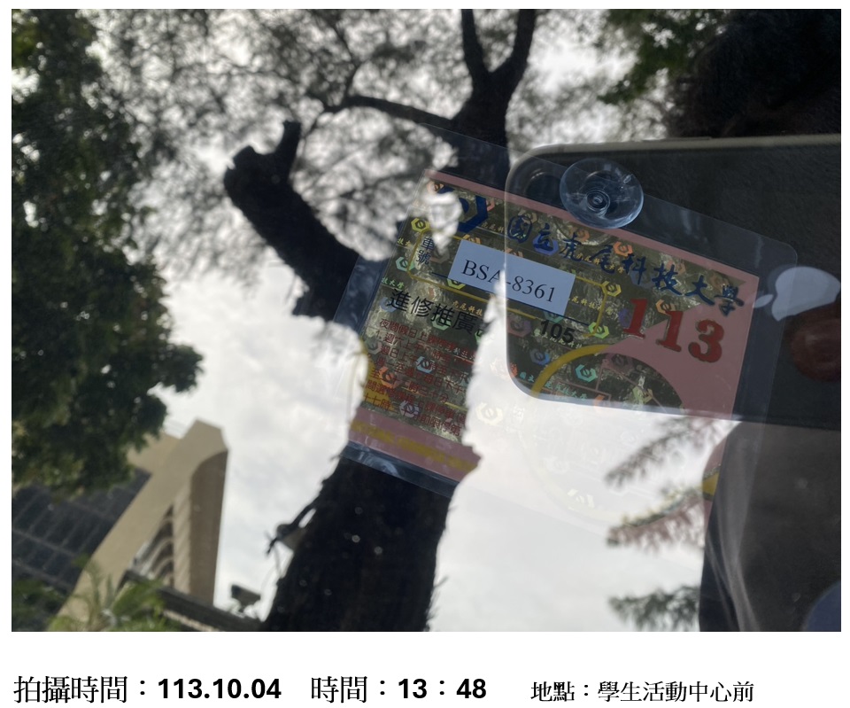註:本校車輛停車管理要點第七條 違規處理 第一款違規之定義中載明:未將車輛通行證(標誌)貼置於明顯適當位置,屬違規事項之一。